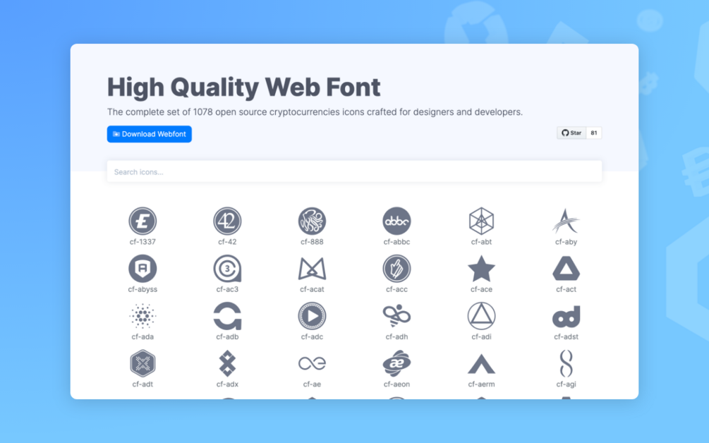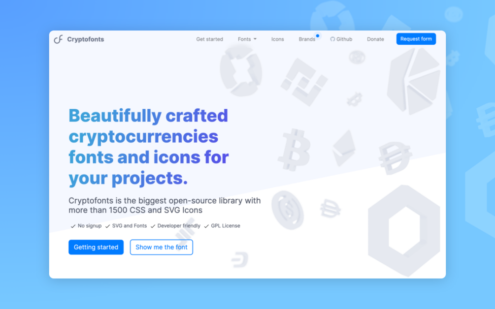 Cryptofonts is a beautifully crafted cryptocurrencies fonts and icons for your projects.